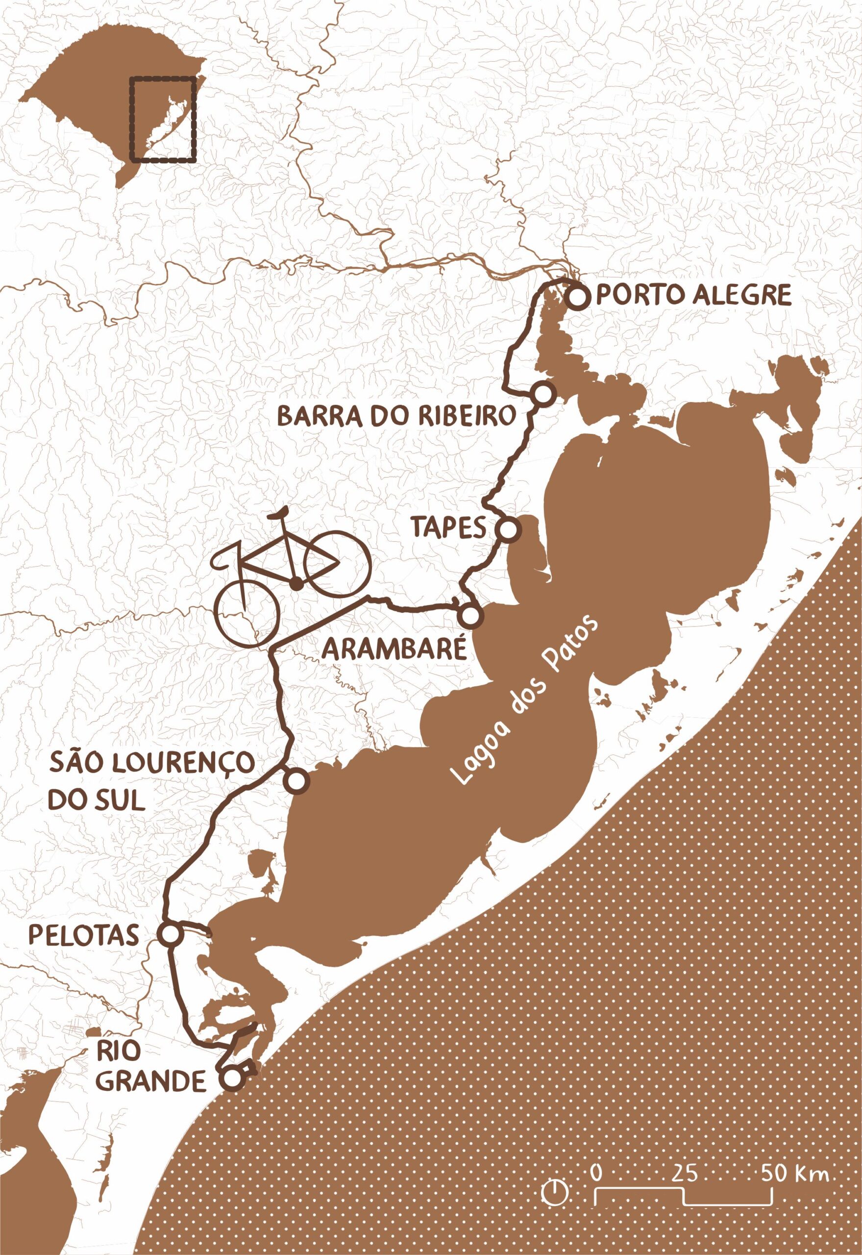 Em oito dias, foram cerca de 500 quilômetros pedalados, contornando a costa oeste da Lagoa dos Patos, com paradas nas cidades de Barra do Ribeiro, Tapes, Arambaré, São Lourenço, Pelotas e Rio Grande.